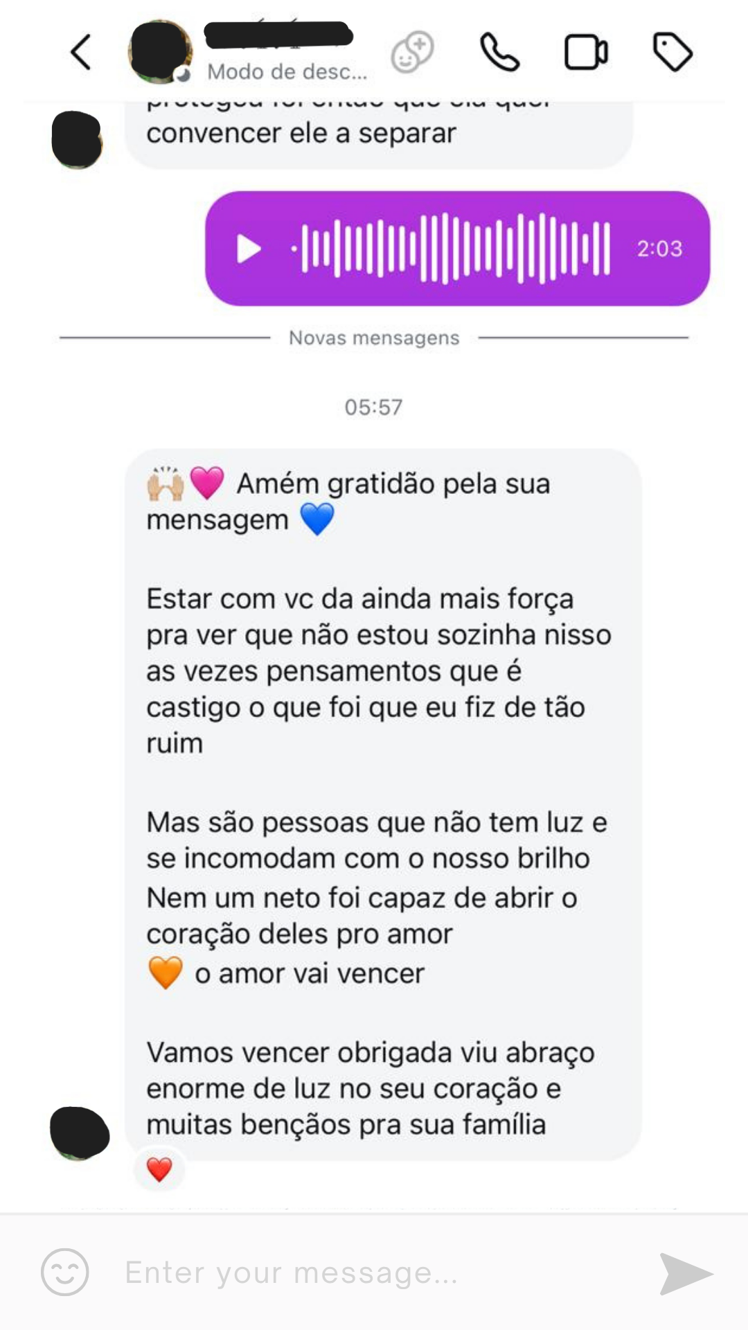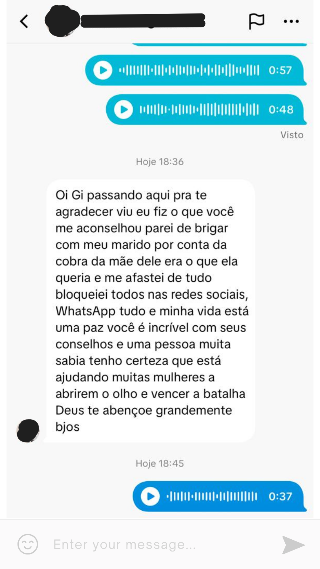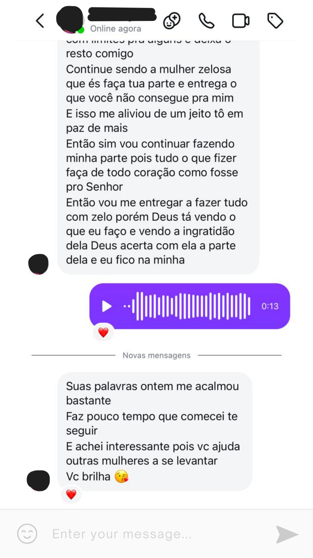 Ao invés de te culpar pelo problema que outras pessoas causam, estou aqui pra te ouvir e te apoiar no seu processo de virada de chave.